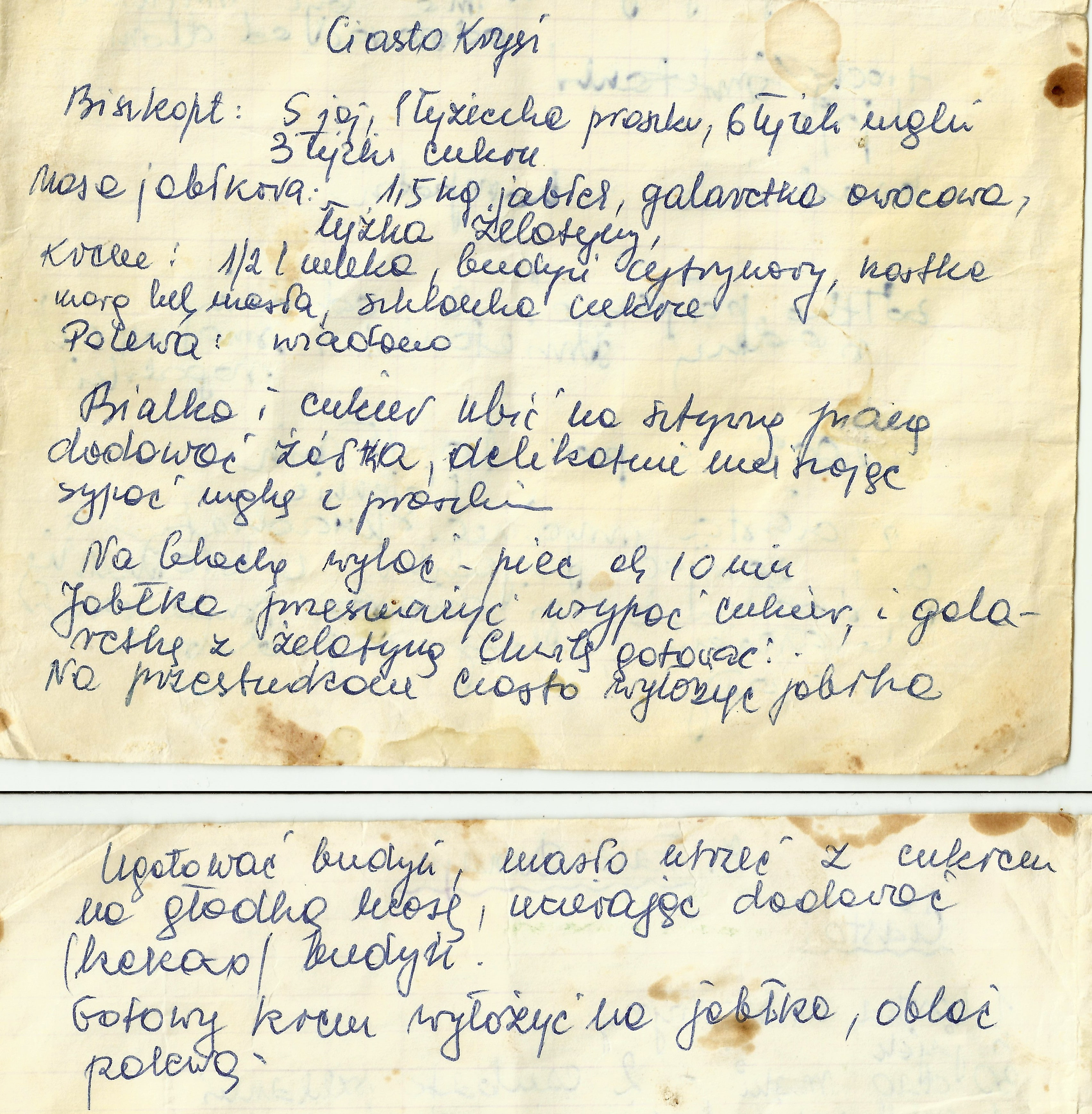 Białka i cukier ubić na sztywną masę, dodać żółtka. Delikatnie ucierając, sypać mąkę z proszkiem do pieczenia. Wylać na blachę i piec około 10min. Jabłka przesmażyć, wsypać cukier i galaretkę z żelatyną. Chwilę gotować. Na przestudzone ciasto wyłożyć jabłka. Ugotować budyń, ciasto utrzeć z cukrem na gładką masę, ucierając dodawać (kakao) budyń. Gotowy krem wyłożyć na jabłka, oblać polewą.