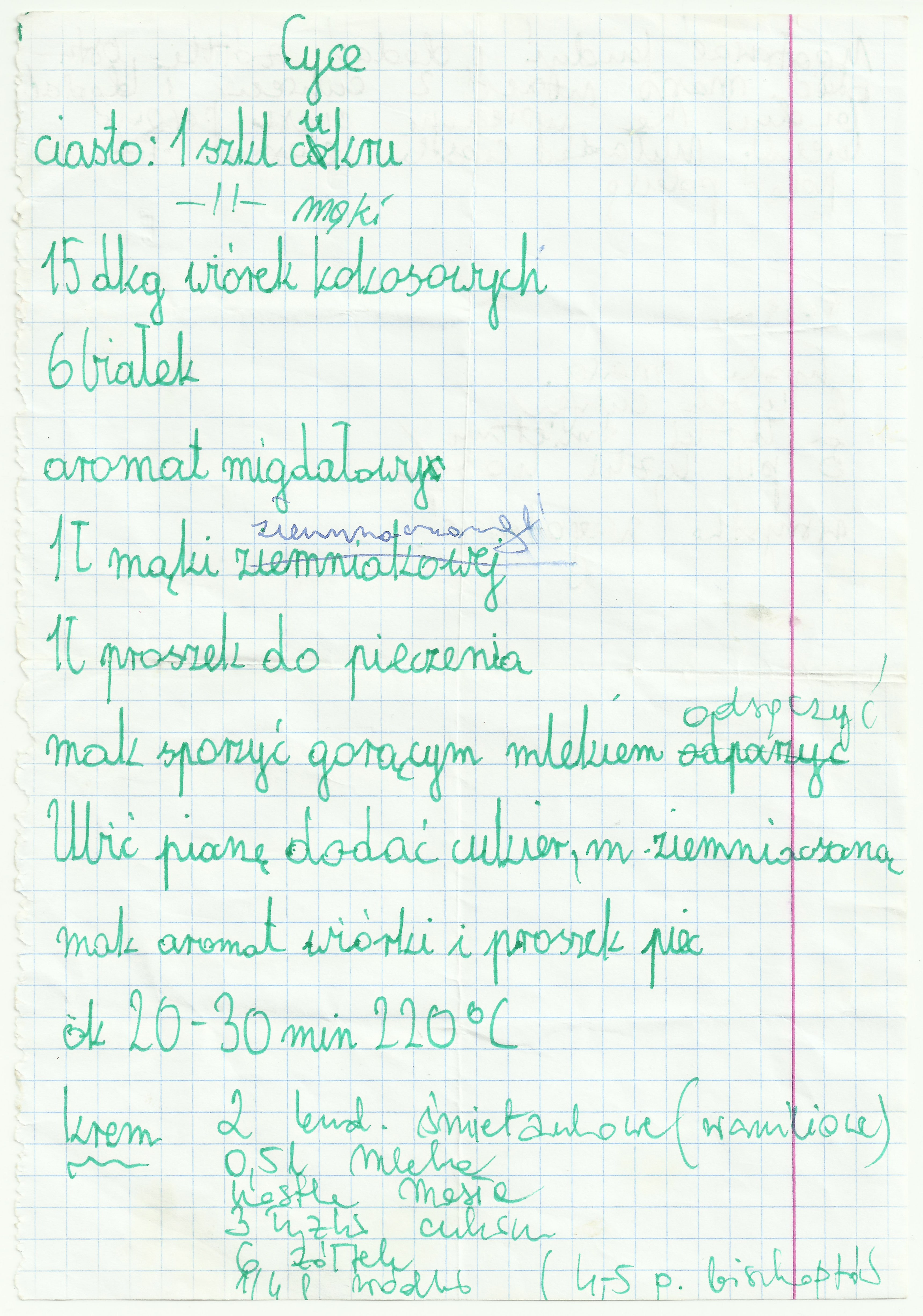 Mak sparzyć gorącym mlekiem, odsączyć. Ubić pianę, dodać cukier, mąkę ziemniaczaną, mak, aromat, wiórki i proszek. Piec około 20-30 minut w 220°C.