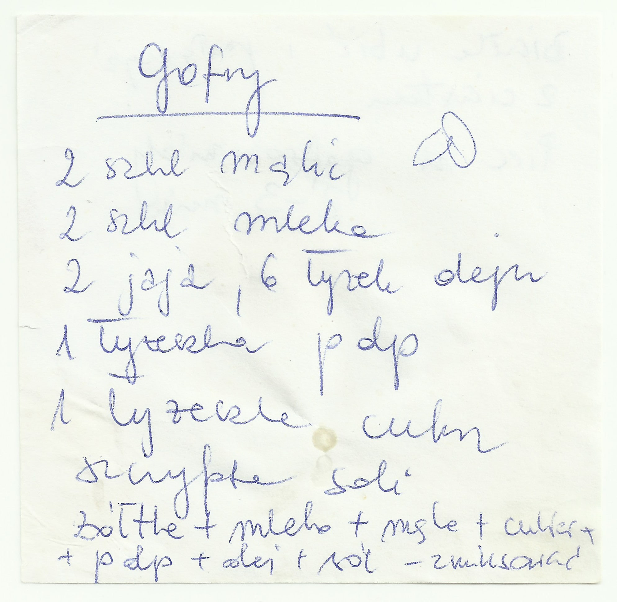 Żółtka, mleko, mąkę, cukier, proszek do pieczenia, olej i sól zmiksować. Białka ubić i połączyć z ciastem. Piec w gofrownicy 2-3 minuty.