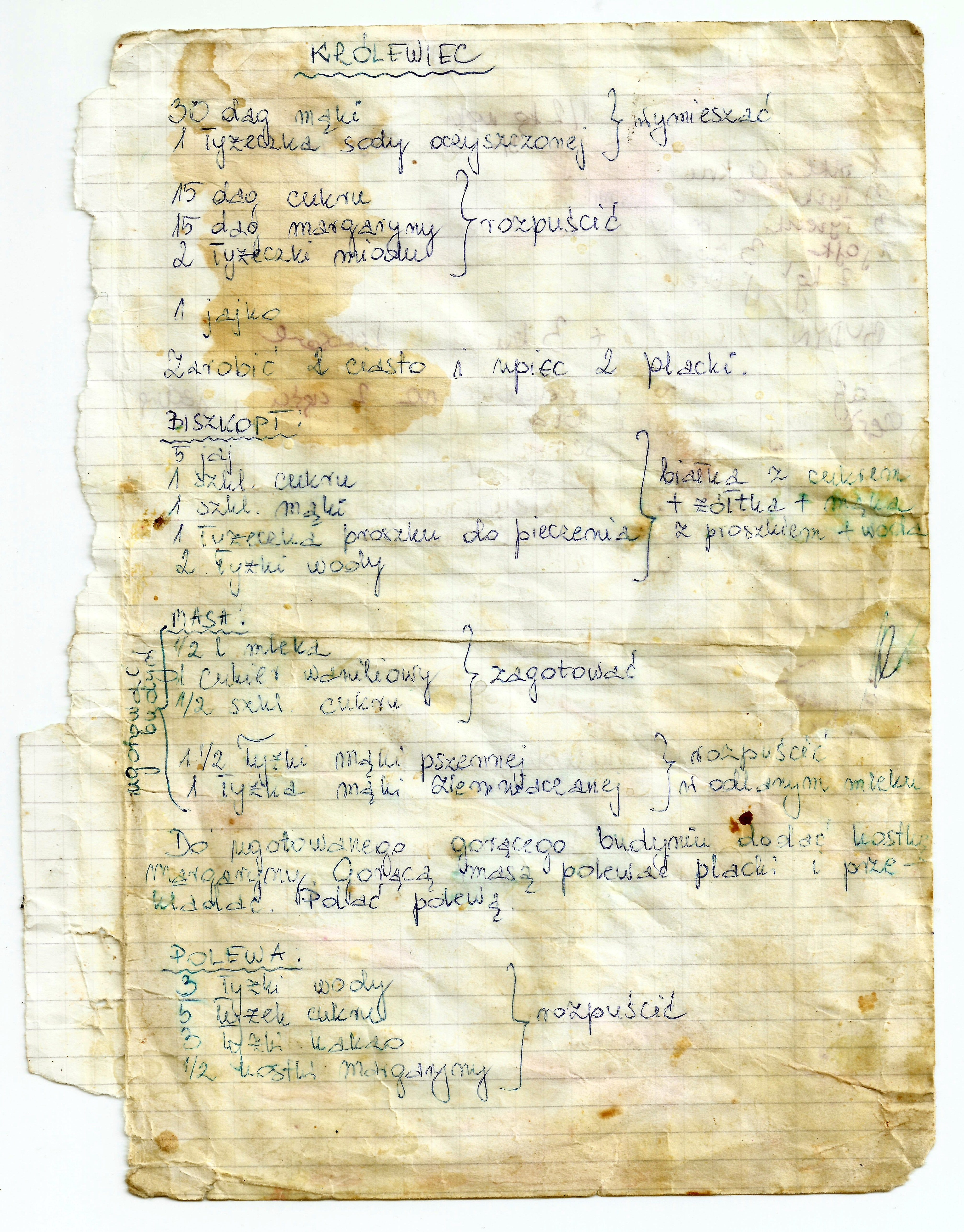 Mąkę wymieszać z sodą. Cukier, margarynę i miód rozpuścić. Zarobić ciasto i upiec 2 placki.