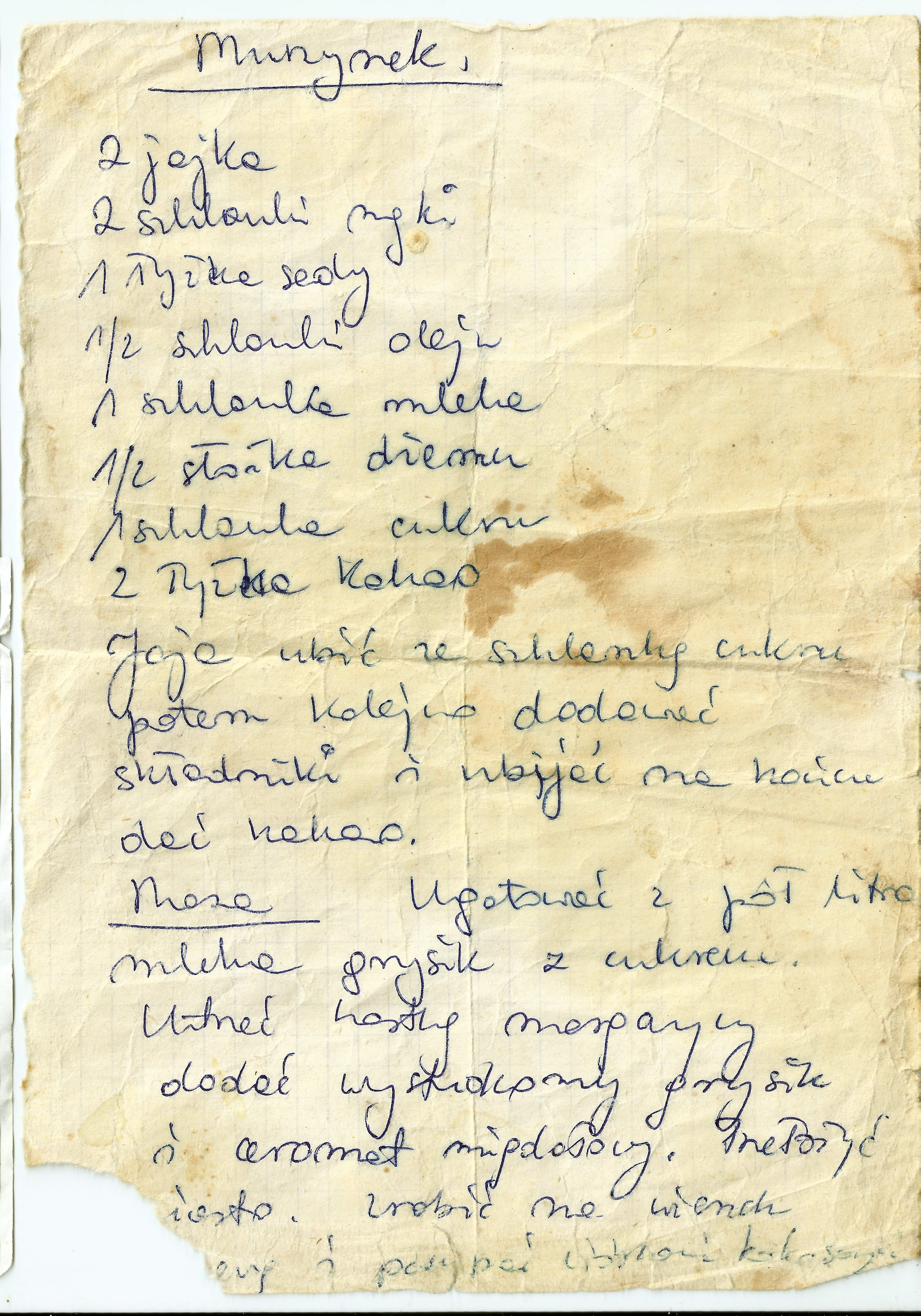 Ugotować z pół litra mleka (?) z cukrem. Utrzeć kostkę margaryny, dodać wystudzony (?) i aromat migdałowy. Przełożyć (?) ciasto. Zrobić na wierzch (?) i posypać wiórkami kokosowymi.